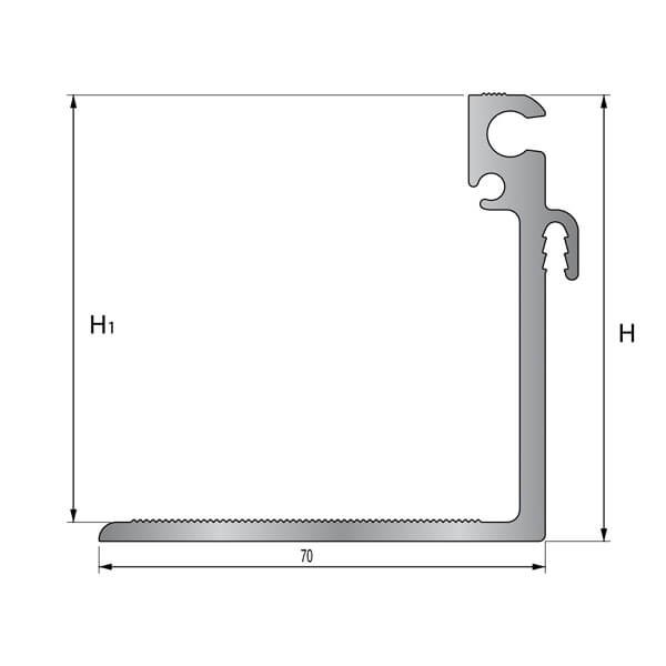 Perfil base per a junt de dilatació estructural fabricada en alumini. Disponible en mesures de 30,50 i 70mm. Per absorbir dilatacions d'estructura.