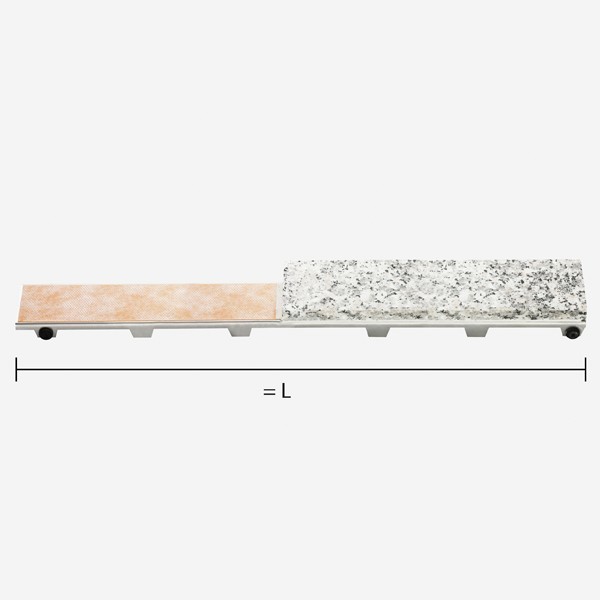 Edelstahlgitter mit Verkleidungsträger für Arbeitsduschwannen KERDI-LINE-D. Höhenverstellbar von 3 bis 25 mm.