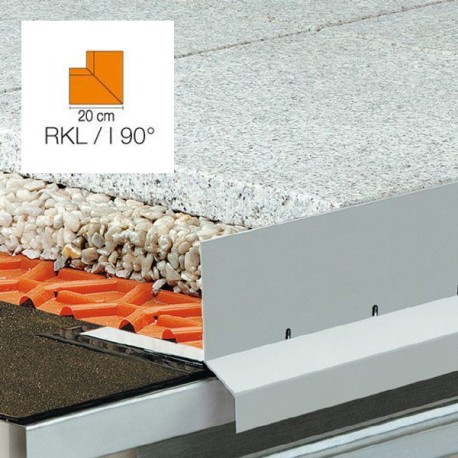 Innenwinkel von 90 ° für BARA-RKL. Wasserablauf mit lackiertem Aluminiumablauf. Geeignet für großformatige Fliesen oder Kies / Kies-Fliesen.