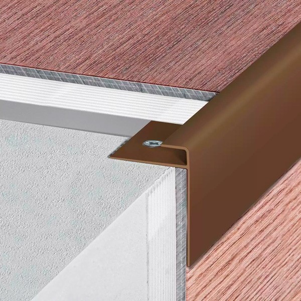 Schlüter-VINPRO-STEP y Schlüter-VINPRO-STEP-R son perfiles especiales de remate para peldaños fabricados en aluminio anodizado que ofrecen la máxima protección y un diseño visualmente atractivo para los bordes de peldaños de revestimientos elásticos (por ejemplo, suelos de LVT). Los perfiles proporcionan una protección segura de los bordes de revestimientos elásticos y un alto grado de seguridad gracias a la buena visibilidad del borde del escalón. Tapa frontal de altura extra.