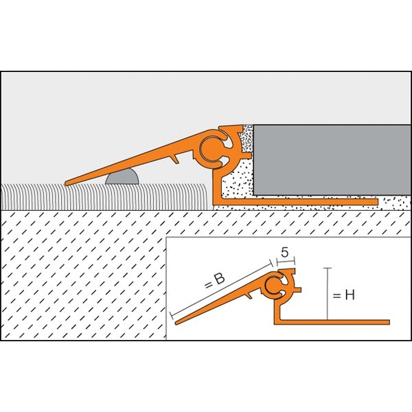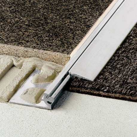Por medio de un ala variable, gracias a una articulación, se adapta el perfil a la altura correspondiente del revestimiento contiguo. De esta forma se evitan los escalones entre los revestimientos de diferentes alturas, que pueden provocar tropezones.