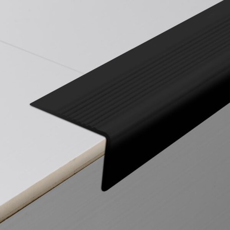 Bordure de marche ou nez de marche en PVC (chlorure de polyvinyle) pour la protection de la marche. Large surface rainurée qui lui confère des caractéristiques antidérapantes.