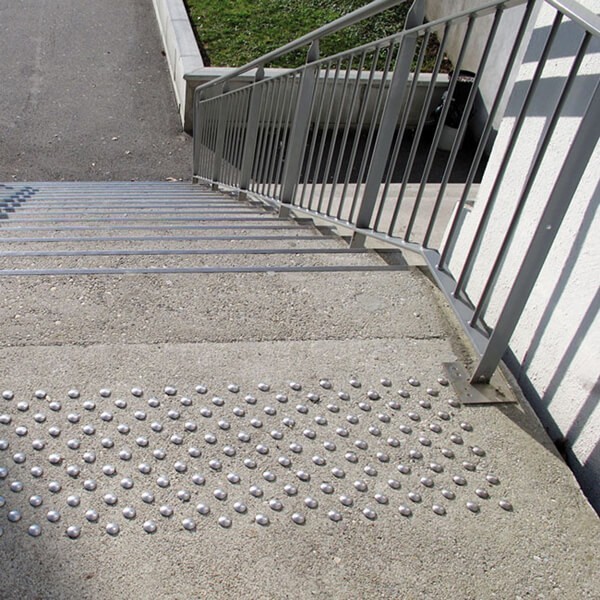 Posizionati all'inizio e alla fine delle scale, fungono da elemento di segnalazione mediante contrasto tattile grazie alla sporgenza di 5 mm.