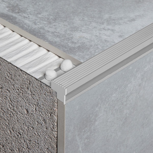 Il design del suo incavo consente l'installazione di qualsiasi striscia LED senza la necessità di un diffusore, conferendo al profilo una maggiore carica decorativa. La sua faccia antiscivolo visibile contribuisce ad aumentare la sicurezza della scala.