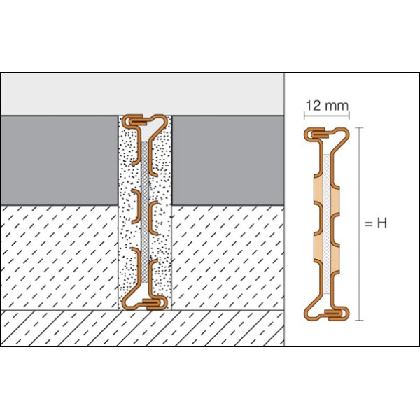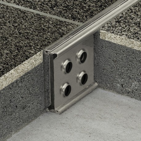 153Profili per giunti di dilatazione in pavimentazioni o giunti di movimento in acciaio inossidabile a strato spesso per assorbire i movimenti orizzontali della malta.