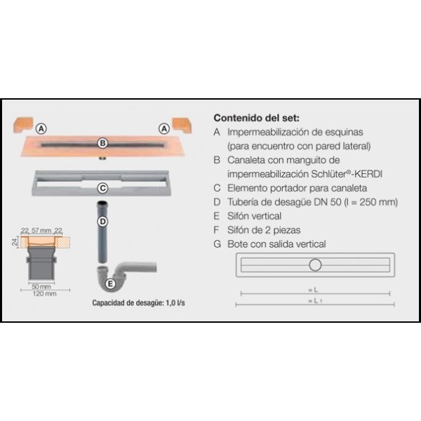KERDI-LINE-VS - Kit de bases de duche de saída vertical