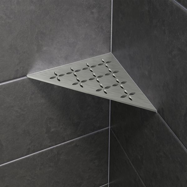 Prateleiras de canto de chuveiro em aço inoxidável escovado e acabamento em alumínio. Será integrado na trama das juntas durante a colocação da cerâmica.